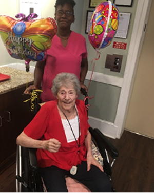 Ingrid Brathwaite is shown right. She was nominated by the clients POA for her special care. The picture show a birthday party Ingrid planned and organized for her client to make her day special.