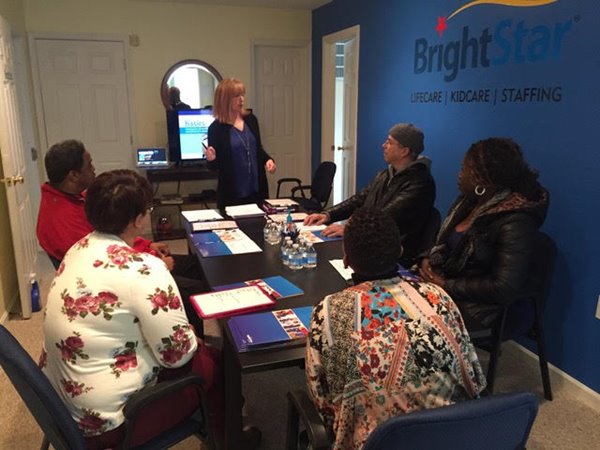 Kerry Massie, co-owner of BrightStar Care with our excellent caregivers - Paul, Donna, Oliviah, Sabra and Carlton