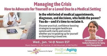 That’s why we’re excited to invite you to an exclusive webinar on January 14th with Christine Bitzer, LICSW from Seabury Resources for Aging. This session will focus on practical strategies for advocating in medical settings, empowering you to confidently navigate healthcare appointments and make informed decisions.